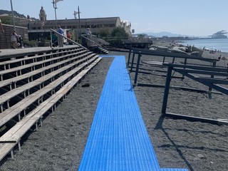 Anzitutto, mantiene la sua vocazione originaria ‘di servizio’ per i centri estivi (nel 2022 circa 3.000 accessi da giugno a settembre), nell’ambito del progetto/patto Act, che vede a Genova oltre 100 enti di terzo settore impegnati nelle attività annuali per l’infanzia e l’adolescenza con capofila Uisp Genova; quindi, apre la possibilità di fruizione per i centri estivi con/di persone con disabilità, anche non minorenni. Inoltre, consolida e rilancia la presenza nei mesi estivi di dodici postazioni fisse stagionali ombreggianti, dedicate ai centri estivi e aperte negli orari diversi dalla fruizione dei centri, nei fine settimana e nelle festività gratuitamente per le famiglie, i minorenni, le famiglie con disabili anche adulti e/o disabili in accesso privato; aumenta gli ausili per le persone con disabilità e le postazioni loro dedicate, anche potenziando le facilità all’accesso fuori e sulla spiaggia (verso il mare, verso le docce, etc.); avvia la collaborazione strutturale con il progetto ‘Genoa Sea Inclusion’ del Comune di Genova e realizzato da Bagni Marina Genovese srl, grazie al quale è previsto il potenziamento della presenza di personale di salvamento e di assistenza dei bagnanti disabili.