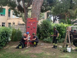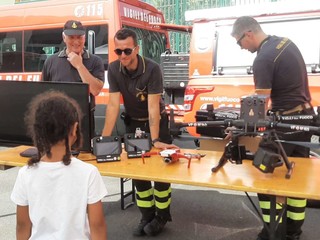 A questi indomiti bambini e ragazzi, è stata data l’opportunità di ricoprire il ruolo dei Vigili del Fuoco provando l’uso di tubazioni antincendio, le attrezzature di soccorso, viaggiando su una teleferica fatta di funi, visto come si pilotano i nostri droni, indossare un elmo per immersioni subacquee, scoprire come sono fatte le nostre motobarche.