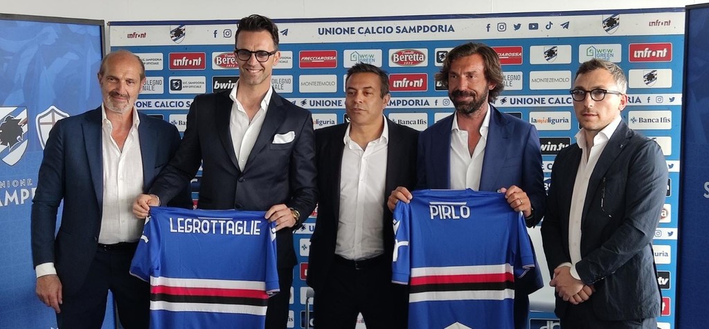 Al fianco di Pirlo, oltre ai nuovi proprietari della società Andrea Radrizzani e Matteo Manfredi, anche Nicola Legrottaglie a cui è stato affidato il ruolo di head of performance del team blucerchiato e il presidente della Sampdoria Marco Lanna.