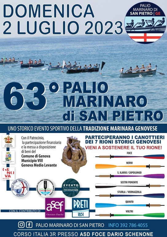 L’ASD Dario Schenone Foce organizza l'edizione numero 63 di questa classicissima sotto l’egida dellaFederazione Italiana Canottaggio Sedile Fisso, con il patrocinio del Comune di Genova, il supporto del Municipio VIII Genova Medio Levante e il sostegno di A.Se.F. e dall’azienda dolciaria Preti.