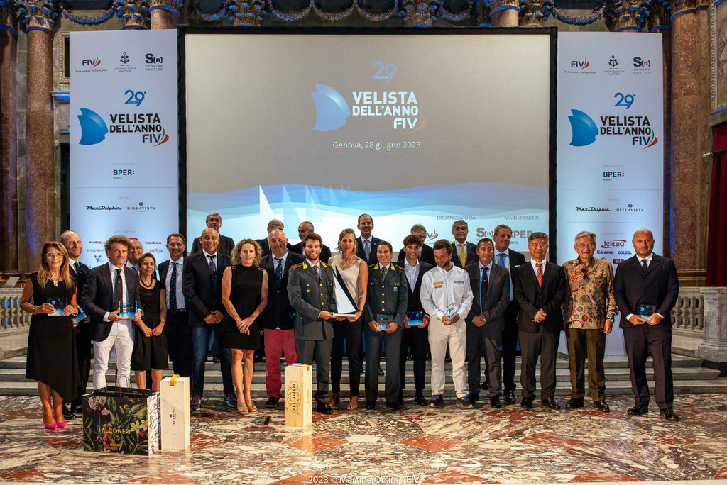 Alle 22:40 è arrivato il momento più atteso della serata, quello dedicato al premio Il Velista dell'Anno FIV2023. Sul palco sono saliti: Ambrogio Beccaria, Mattia Cesana, Marta Maggetti, Diego Negri e Sergio Lambertenghi, Ruggero Tita e Caterina Banti e con loro Saverio Cecchi, Fabio Planamente, presidente del settore vela di Confindustria Nautica, Francesco Ettorre e Marco Bucci.