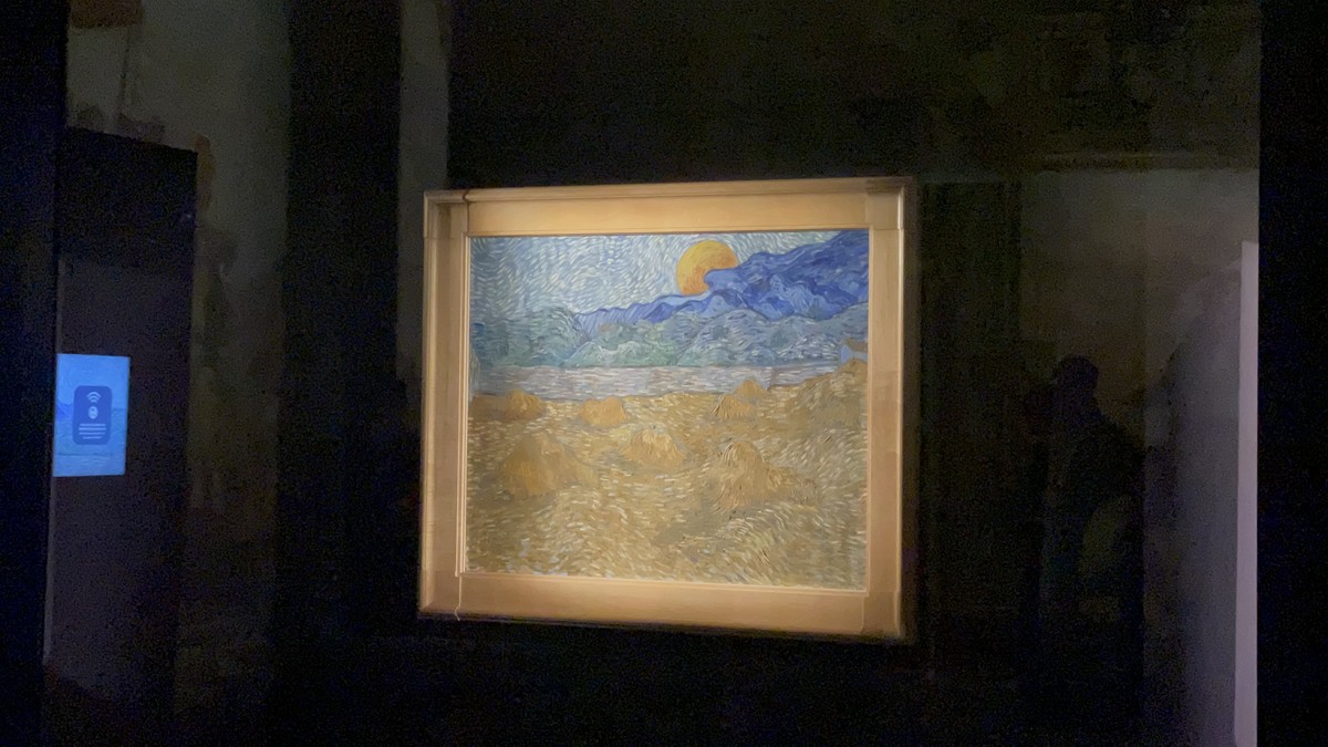 Cinque minuti di pura emozione, immersi nella meraviglia del “Paesaggio con covoni e luna nascente” di Vincent Van Gogh.Torna così a Palazzo Ducale il format pluripremiato, questa volta dedicato al maestro olandese. Nell’allestimento di Arthemisia, curato da Costantino D’Orazio, l’opera, realizzata durante la permanenza di Vincent nel manicomio di Saint-Paul-de-Mausole, a Saint-Remy-de-Provence, nel luglio 1889, si fonde con gli affreschi della Cappella Dogale realizzati da Giovanni Battista Carlone.