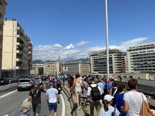 Folla di spettatori e curiosi in corso Aurelio Saffi, nei giardini di Villa Croce, in Corso Italia e ai Giardini Govi per assistere allo spettacolo in cielo e in mare, con momenti di entusiasmo e qualche applauso quando la Pattuglia Acrobatica Nazionale sembrava sfiorare le teste dei presenti.
