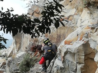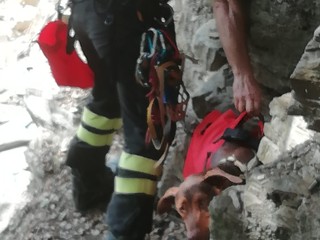 E' stato provvidenziale l'intervento dei Vigili del Fuoco di Genova per recuperare Siria, la cagnolina meticcia precipitata per circa 12 metri da una parete scoscesa in zona Bavari.