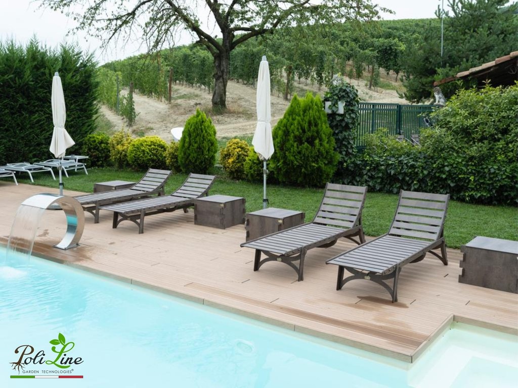 PoliLine – The Garden è una linea integrata di sedie, sdraio, lettini prendisole, cassapanche, sedie e tavoli a gamba alta e bassa di svariate misure e dimensioni capace di soddisfare il semplice uso domestico su balconi e terrazzi per i propri momenti di relax fra pillole di natura, e spazi ben più ampi in cui ricreare momenti di aggregazione, svago e riposo immersi nel verde.