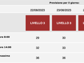 Per martedì la temperatura massima sarà di 32 gradi, che diventeranno 33 mercoledì e giovedì. Ma a preoccupare è la percepita, che tutti i giorni arriverà a quota 36.