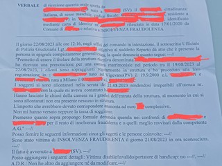 La coppia avrebbe dovuto lasciare la struttura martedì 22 agosto, “ma, approfittando della mia assenza, sono scappati già al lunedì sera senza avvisare. E ovviamente senza pagare i 324 euro più gli extra”.