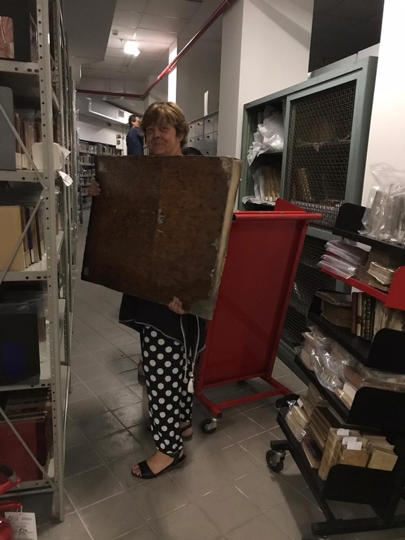 L'acqua piovana ha danneggiato poco meno di un migliaio di volumi, che verrano restaurati non appena messo in sicurezza il resto del patrimonio culturale all'interno.