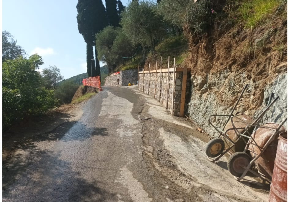 Per quanto riguarda l’intervento in località Casareggio, il progetto prevede il restyling della viabilità che connette la frazione con il resto del comune, in modo da adeguare la strada all’aumento del traffico e metterla in sicurezza. I lavori in corso comprendono opere di scavo per allargamento della sede stradale, la realizzazione di cunette per la raccolta delle acque meteoriche al margine della strada (in modo da convogliarle e smaltirle correttamente), la messa in sicurezza e la riprofilatura dei versanti a monte con l’installazione di reti metalliche e la realizzazione di un muro in cemento armato, con base a micropali, per sostenere il fondo stradale. Al momento rimangono da realizzare il muro a valle della chiesa di San Francesco e alcune piccole opere di finitura.