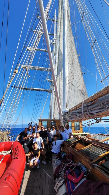 A bordo si vive e si opera fianco a fianco, attorniati dal mare e dal vento. Tutti, indistintamente, ciascuno con un ruolo preciso, marinai, ragazzi, accompagnatori. Si diventa tutti parte di uno stesso equipaggio, senza distinzioni tra chi sale a bordo per una settimana e chi ne fa parte in pianta stabile.