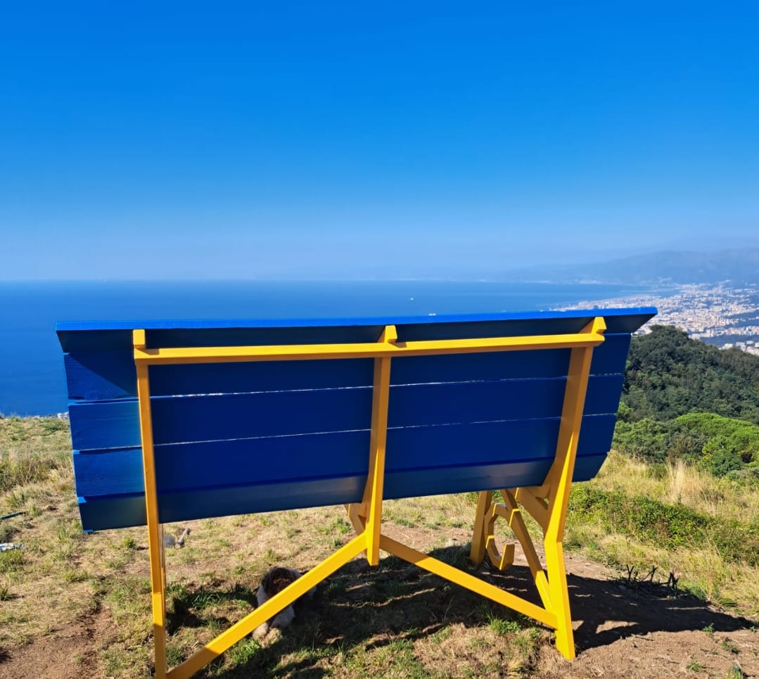 Colorata di giallo e di azzurro, la panchina numero 323 domina la città e offre una visuale mozzafiato capace di abbracciare Genova da levante a ponente grazie all’altitudine, quasi 700 metri sul livello del mare.
