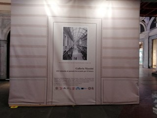 Le basi dei ponteggi sono state schermate tramite l’utilizzo di pannellature rigide serigrafate e, su ognuna di esse, sarà installata una foto storica della galleria, in una raccolta frutto della ricerca negli archivi del DOCSAI – Centro di documentazione per la storia, l’arte e l’immagine di Genova nell’ambito dei lavori.