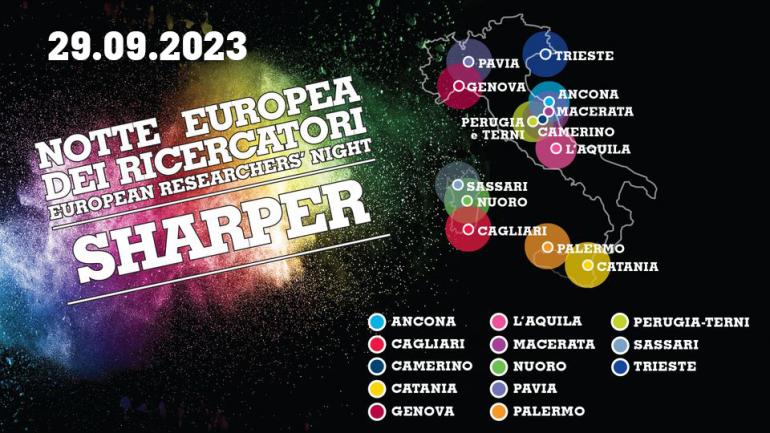 SHARPER 2023 si svolge in 14 città italiane: Ancona, Cagliari, Camerino, Catania, Genova, L’Aquila, Macerata, Nuoro, Palermo, Pavia, Perugia, Sassari, Terni e Trieste, con il coordinamento dall’impresa sociale Psiquadro, ed è realizzato in collaborazione con un consorzio che comprende l’Istituto Nazionale di Fisica Nucleare – INFN, il centro della scienza Immaginario Scientifico, l’associazione Observa Science in Society e 5 università: Politecnica della Marche, Università di Cagliari, Università di Catania, Università di Palermo, Università di Perugia.