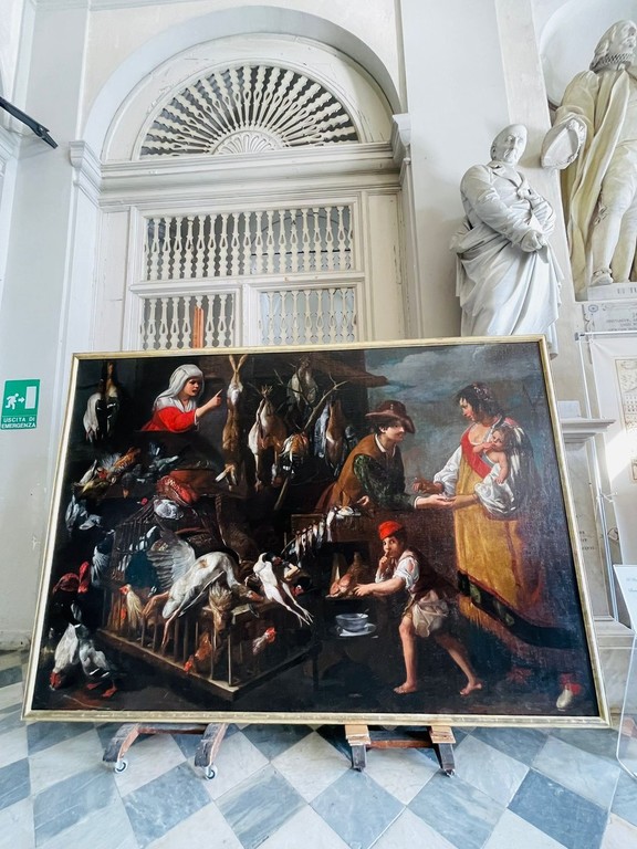 Fra le 8 straordinarie tele di grandi dimensioni Mercato con ritratto di bambino e Mercato con la buona ventura, eseguite da Domenico Fiasella con la collaborazione di Giacomo Legi e l’Ultima cena attribuita a Castellino Castello.
