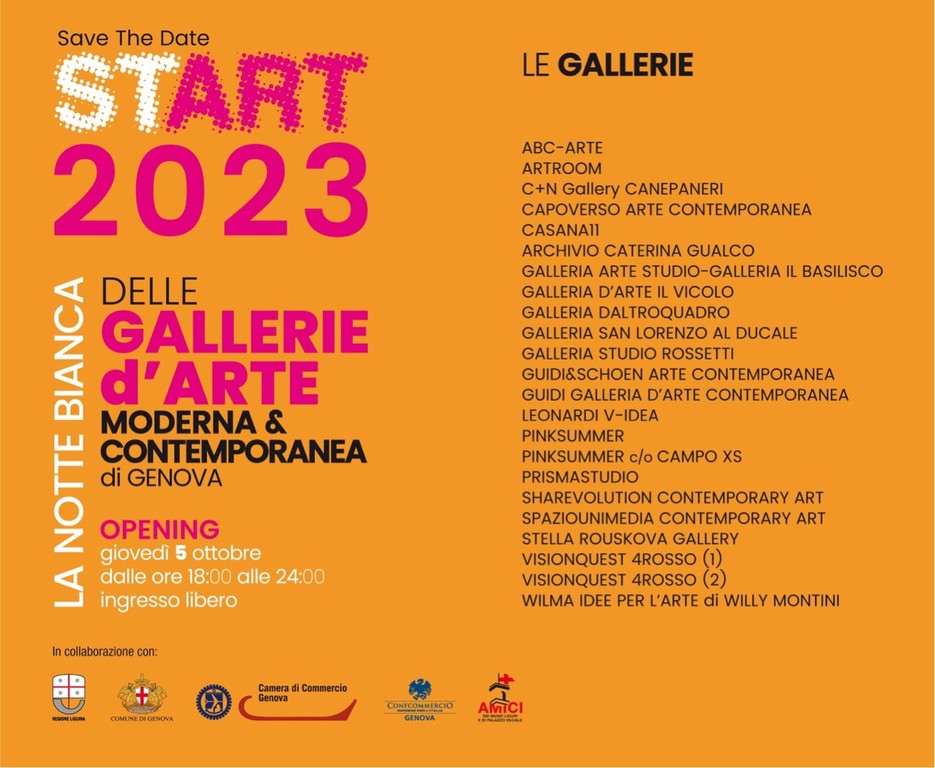 Questo l’elenco completo delle gallerie d’arte che prenderanno parte a Genova Start