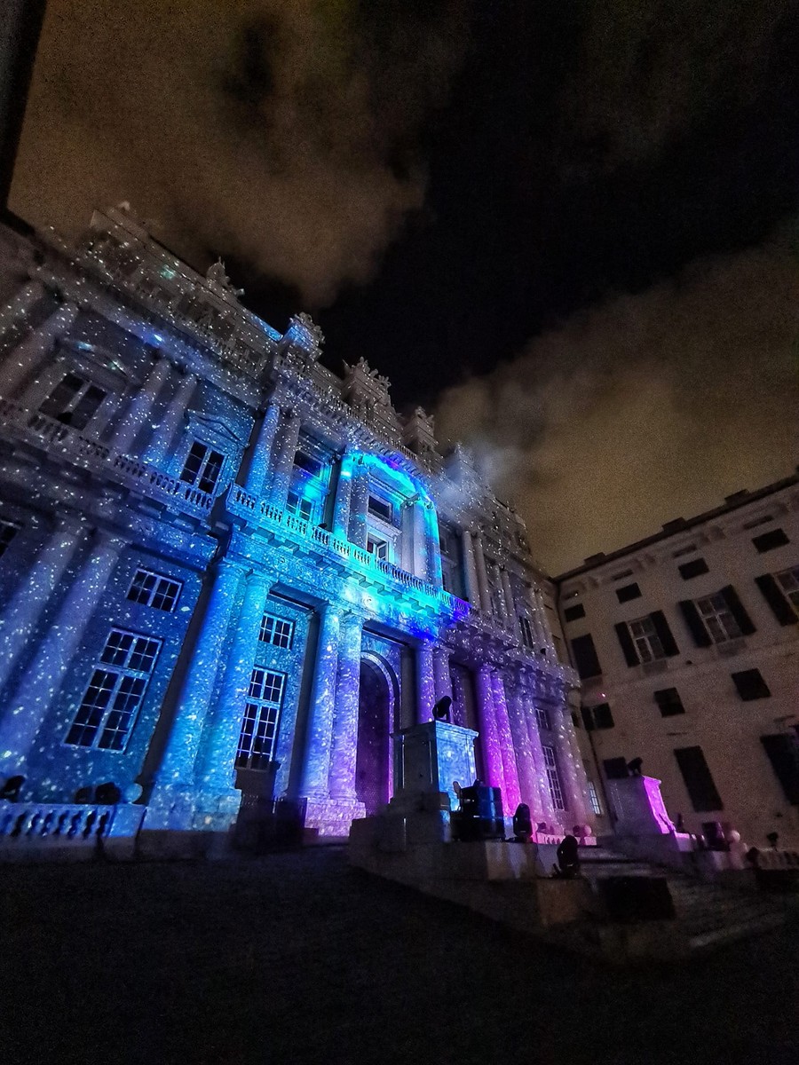 Il concetto alla base del Monumental Tour è quello di far interagire il patrimonio artistico delle città con le nuove tecnologie, offrendo una prospettiva innovativa e coinvolgente. In questo caso, il monumento selezionato è stato il maestoso Palazzo Ducale. La facciata principale del palazzo è stata trasformata in una tela vivente, con uno spettacolo di immagini e luci che ha raccontato la storia di Genova e la sua connessione con il mare. Mentre lo spettacolo si svolgeva, il pubblico ha potuto ballare al ritmo della musica elettronica suonata dal vivo da Michael Canitrot.