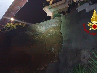 Sono sette le palazzine evacuate dopo il crollo di un muraglione di contenimento lungo circa venticinque metri.