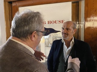 “Sampdoria, la pioggia non ci bagna quando giochi tu” recita uno dei cori più noti in gradinata Sud. E così è stato anche ieri sera alla Canottieri Sanremo dove in una piovosa serata di fine ottobre ha fatto il suo debutto ufficiale il Sampdoria Club ‘Sanremo Blucerchiata’. Un appuntamento storico impreziosito dalla presenza del presidente Marco Lanna che ha rappresentato la società alla prima uscita ufficiale del Club matuziano nato per iniziativa di Federico Crespi e di tanti appassionati della zona, oltre a Enrico Vella, ex calciatore della Sanremese e, non a caso, della Sampdoria.