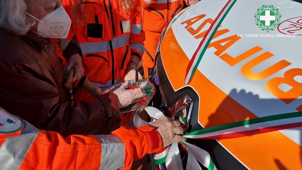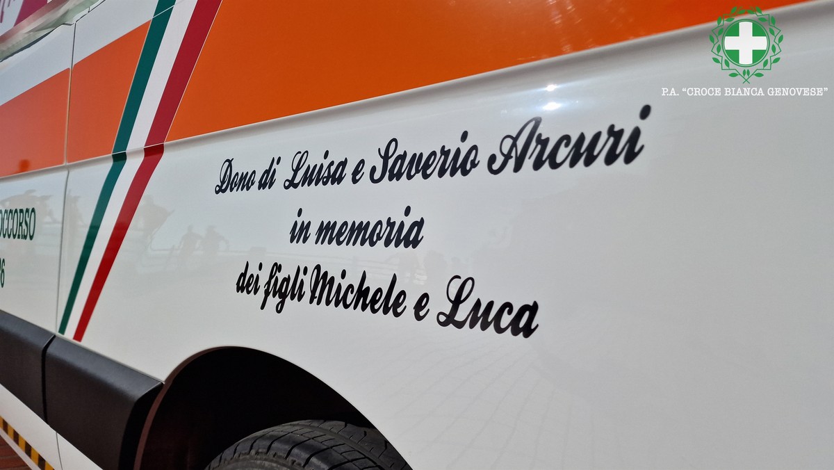 Questa ambulanza è stata donata da Luisa e Saverio Arcuri in memoria dei loro figli Michele e Luca ed è destinata all'uso nell'emergenza sanitaria territoriale in convenzione con il 112 regionale presso la sede principale di Piazza Palermo, alla Foce. Con questa aggiunta, la Croce Bianca Genovese ora ha un totale di 38 veicoli tra ambulanze, veicoli speciali, autovetture e veicoli per trasporti sociali. Inoltre, il Presidente Walter Carrubba è stato premiato per i suoi cinquant'anni di servizio all’Associazione.