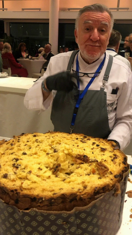 La cena che ha avuto come protagonista il tartufo si è conclusa con un altrettanto regale prodotto: il panettone Albertengo nella sua ricetta tradizionale con uvetta e canditi che preparato dallo chef Massimo Camia ha deliziato il fine pasto degli invitati.