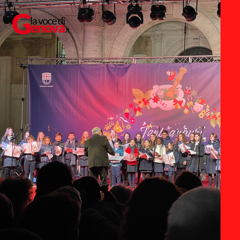 Alle 18 al via il Christmas show con il coro delle voci bianche del Carlo Felice di Genova, che ha intonato alcune delle più classiche canzoni natalizie.