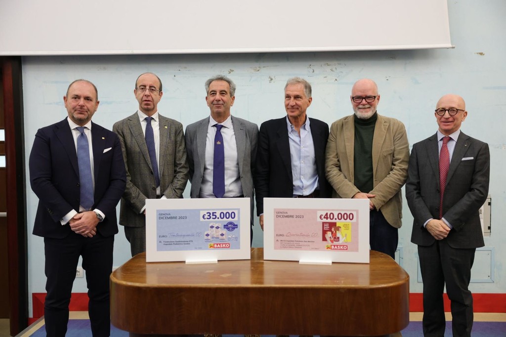 Basko consegna 35.000 euro al Gaslini e 40.000 euro al San Martino per il miglioramento ospedaliero e la ricerca scientifica