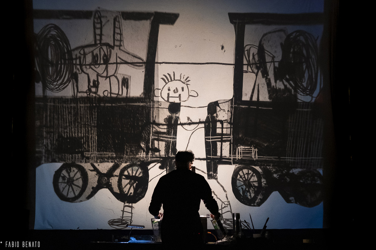 Sfruttando la sua straordinaria capacità di disegnare contemporaneamente con due mani, Gek Tessaro si è inventato un personale modo di fare spettacolo, il “teatro disegnato”: le sue storie, poetiche e pervase da una sottile ironia, prendono vita istantaneamente con l’ausilio di inchiostri, chine, acquarelli, sabbia e una lavagna luminosa, accompagnate da una narrazione in rima e dalla musica.