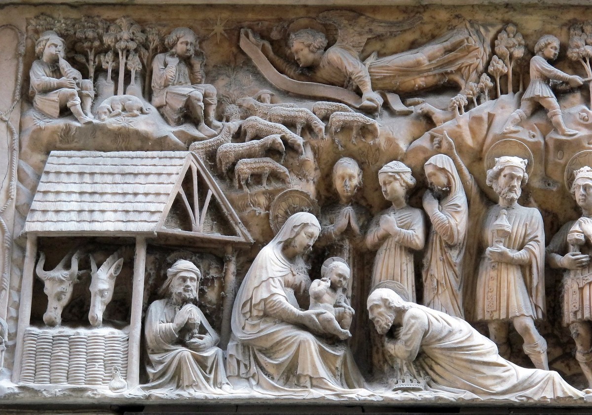 È il caso dell’Adorazione dei Magi, il bassorilievo attribuito a Giovanni Gagini realizzato nel 1457, che oggi si trova a far bella mostra di sé come sovraporta dell’ingresso di un negozio in via degli Orefici.