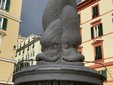 Una composizione che, nella sua interezza, non superava i due metri e settanta. Collocata nel chiostro, la fontana li rimase fino al 1797, quando le soppressioni napoleoniche decretarono la chiusura della chiesa e del convento.