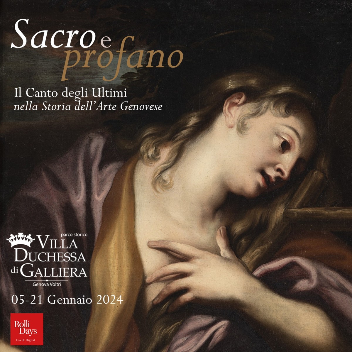 Dal 5 al 21 gennaio nel Teatro Storico di Villa Duchessa di Galliera, sarà allestita l'esposizione temporanea dedicata al 'Sacro e Profano - il Canto degli Ultimi nella Storia dell'Arte Genovese', inserita nel programma dei Rolli Days invernali del 2024 per il Comune di Genova. Nelle giornate del 5, 6 e 7 gennaio sarà anche aperta eccezionalmente la Sala degli Specchi e la Sala delle Conchiglie con i teli di fiandra appartenuti ai Duchi di Galliera e la suggestiva luce naturale e delle candele per uno scenario unico nel suo genere.