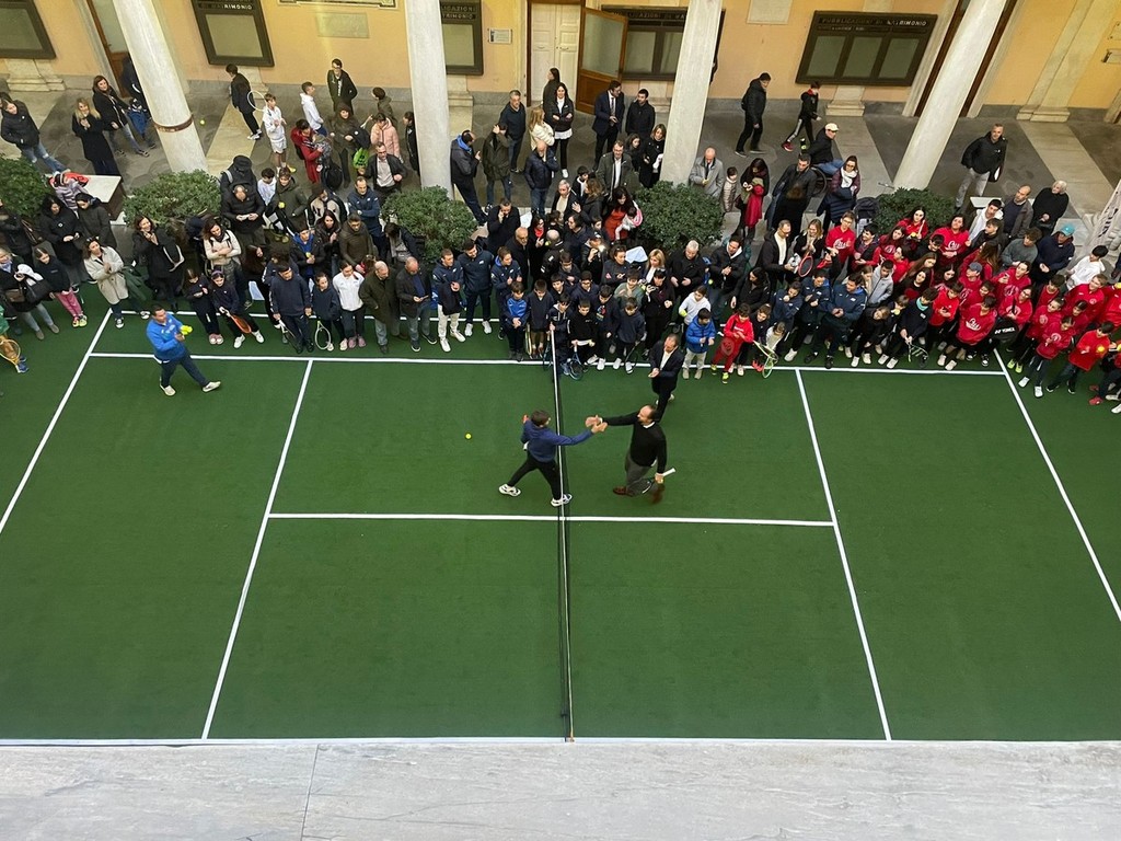 Lo show di Matteo Arnaldi è stato un momento attesissimo da tutti coloro che sognano di ripercorrere le orme del ventiduenne capace di scrivere una grande pagina di Davis, con la vittoria nell’incontro d’apertura della finalissima contro l’australiano Popyrin ed è stato un susseguirsi di emozioni, fino agli ultimi palleggi proprio con Diego Nargiso e la stretta di mano a centro campo. Poi tutti in Salone di Rappresentanza a salutare la Coppa Davis che potrà essere ammirata a Tursi fino a martedì.