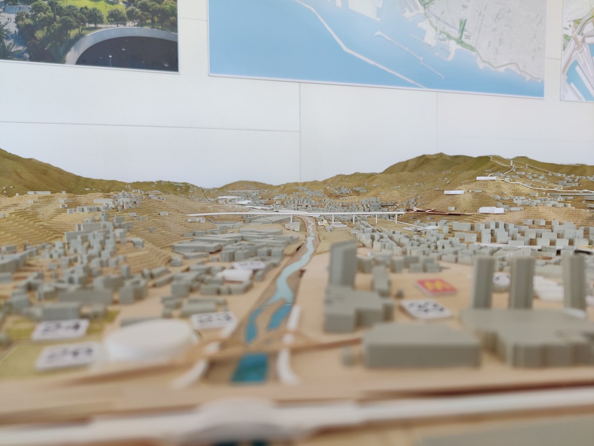 La città ha presentato un plastico in legno tridimensionale di 6 metri per 2, in scala 1:5000, che offre una visione completa da Voltri a Nervi, includendo le prossime opere infrastrutturali previste entro il 2030.