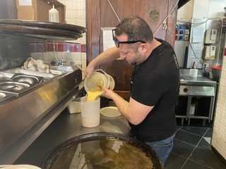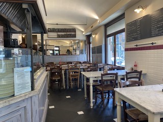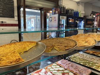“Quest’anno diventiamo maggiorenni, compiamo diciotto anni” scherza il titolare, mentre ci racconta come ha deciso di avviare questa attività: “L’idea di aprire il locale è nata naturalmente perché sono un po’ un figlio d’arte. Mio padre fa questo lavoro da quando ha quindici anni ed è stata una conseguenza per me prendere le sue ricette, rivisitarle e portarle avanti. Il nostro cavallo di battaglia sono le farinate, che prepariamo proprio seguendo una sua ricetta di più di vent’anni fa. Le prepariamo poi con tanti ingredienti diversi, oltre alle più classiche con le cipolline, il gorgonzola e i carciofi freschi: la nostra ricetta più apprezzata è quella con le acciughe fresche, una vera delizia. Un altro abbinamento che abbiamo inserito di recente nel menu è quella con la stracciatella e i gamberi viola di Santa Margherita Ligure”.