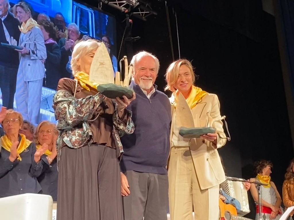 Si può essere personaggi famosi, con brillanti carriere, restando prima di tutto persone vere, autentiche, con un cuore. Ce lo dimostrano, anno dopo anno, Antonio Ricci, Gino Rapa e tutti i Fieui di caruggi di Albenga, che riescono a portare sul palco del Teatro Ambra personaggi straordinari, ancora più straordinariamente sensibili. Ogni volta, qualche lacrima scappa, quando si parla di persone che soffrono. Emozioni che si materializzano. È successo anche oggi, con Caterina Caselli e Anna Foglietta, vincitrici del Premio Fionda 2024.