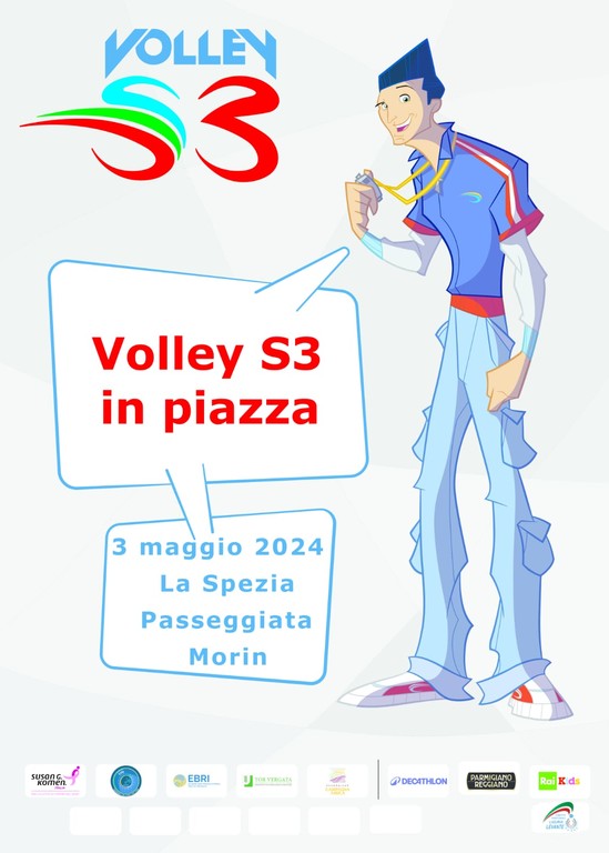 Venerdì 3 maggio "Volley S3 in piazza", circuito federale giovanile dedicato alla promozione e alla conoscenza della Pallavolo tra i giovani, approda alla Spezia. Appuntamento in passeggiata Morin a partire dalle 9:30 con la partecipazione di Andrea Lucchetta (capitano della Generazione dei Fenomeni) e Valerio Vermiglio, presenti sui campi per giocare insieme ai ragazzi. Lucchetta, campione mondiale 1990, europeo 1989 e bronzo a Los Angeles 1984, e Vermiglio, bicampione europeo e argento ad Atene 2004, proporranno giochi a tema sui fondamentali del volley e contemporaneamente si svolgeranno attività culturale e formativa. Dalle 9:30 alle 12:30, l'incontro con gli studenti della Primaria e secondaria primo grado (prima media) e dalle 14:30 alle 17, appuntamento con le società sportive FIPAV Liguria.