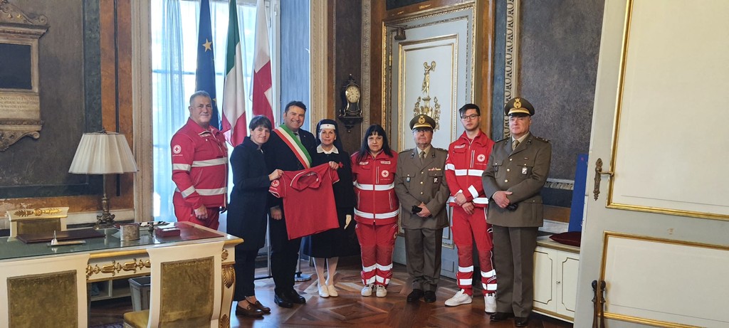 Questa mattina la Croce Rossa ha simbolicamente consegnato la sua bandiera nelle manidell’Assessore allo Sviluppo Economico Mario Mascia con una piccola cerimonia tenutasi nell’Ufficio di Rappresentanza del Sindaco. La bandiera è stata poi esposta alla balconata di Palazzo Tursi e sarà visibile per una settimana.