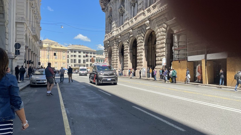Un bagno di folla per gli atleti che hanno così percorso via XX Settembre imboccando poi corso Italia per dirigersi a Quarto, sempre accompagnati dalle bandierine sventolate da grandi e piccini.
