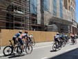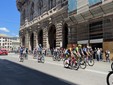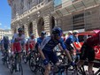 In centinaia si sono radunati per veder passare i ciclisti durante la sfilata che da piazza della Vittoria li ha portati verso la partenza.