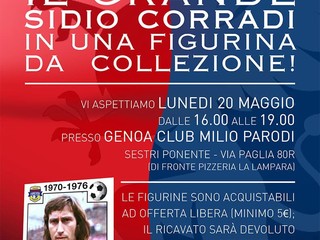 In questa occasione unica gli appassionati avranno l'opportunità di partecipare alla presentazione della figurina solidale Celebrative Stickers n. 78, dedicata appunto al mitico Sidio Corradi in collaborazione con il Museo del Genoa.