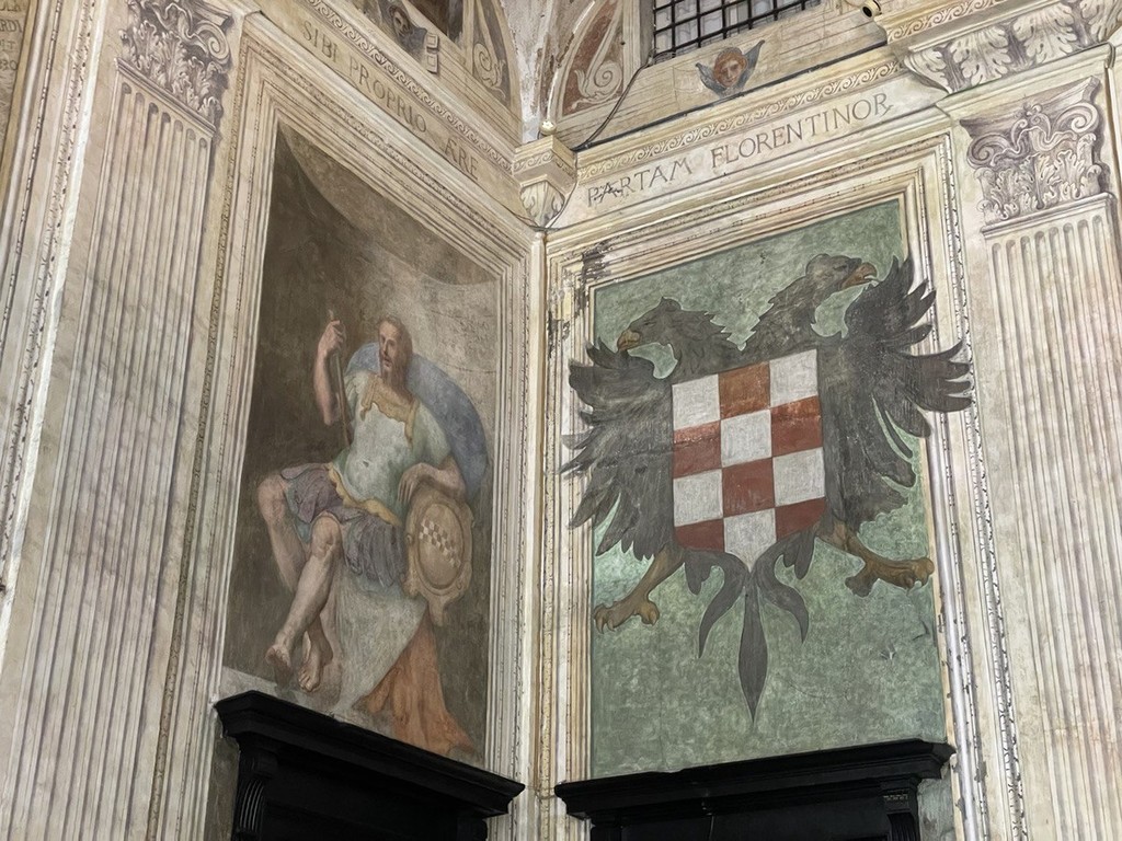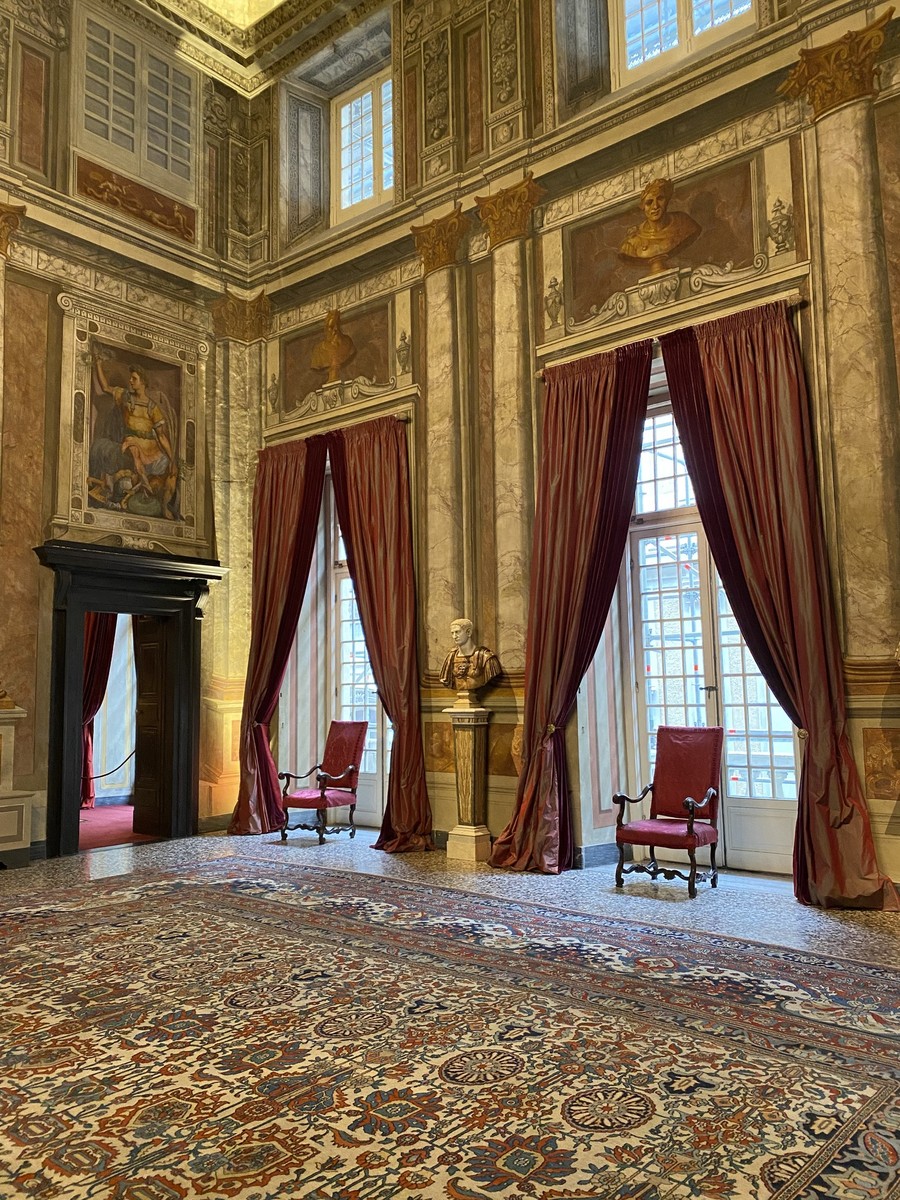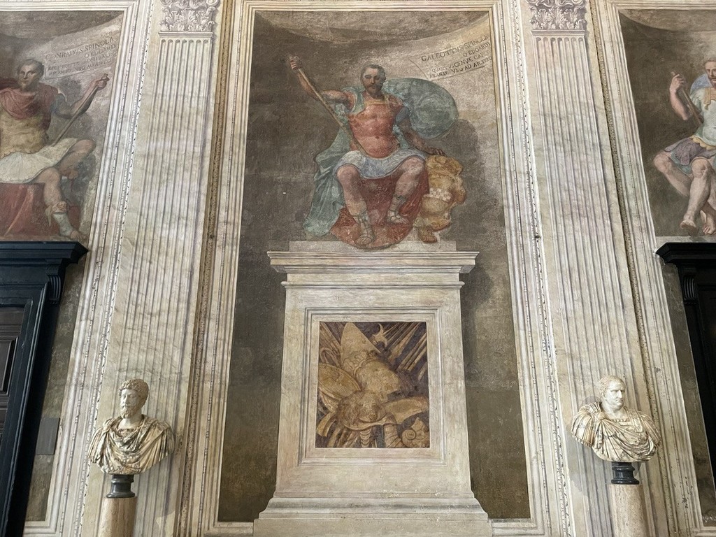La vita di Cesare rappresentata da Lazzaro Tavarone decora le due sale nel lato ovest in stile Manierista.