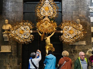 A causa del maltempo, non si è svolta la processione che, da tradizione, ogni anno vede la cassa argentea del XVI secolo e i tradizionali crocifissi percorrere un itinerario che si snoda da via san Lorenzo, piazza Raibetta, via Frate Olivero, piazza Caricamento, fino al Porto Antico, a Calata Falcone Borsellino per la benedizione della città e del mare.