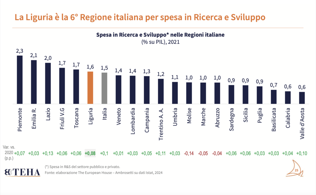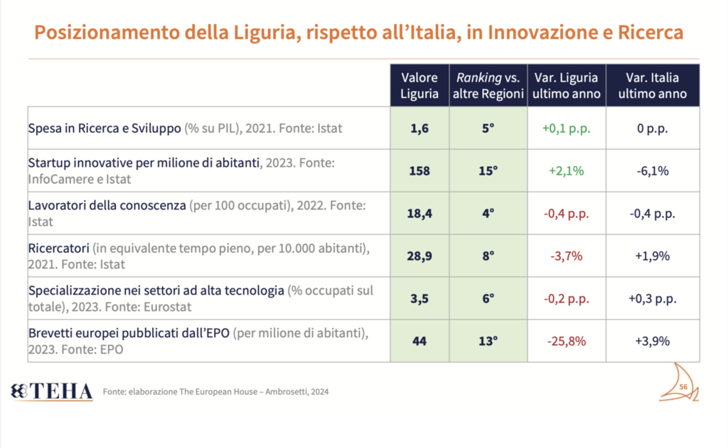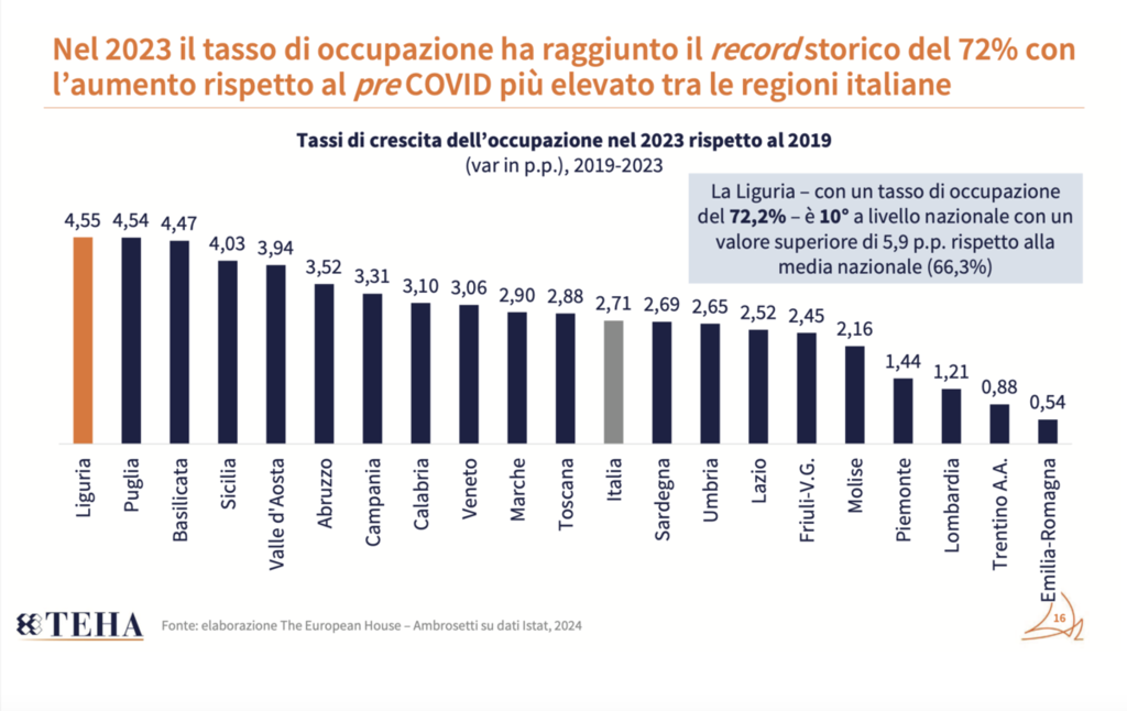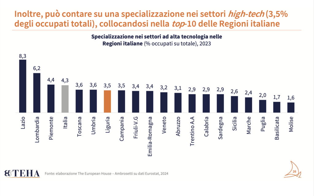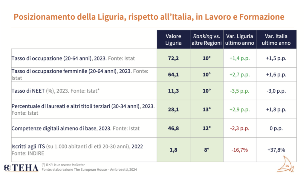 Dati che indicano come la Liguria possa da una parte esultare per i risultati raggiunti sul piano dello sviluppo anche in relazione alla media nazionale, ma dall’altra debba ancora investire e fare molto per essere al passo con i tempi e attrarre sul territorio le nuove generazioni di lavoratori.