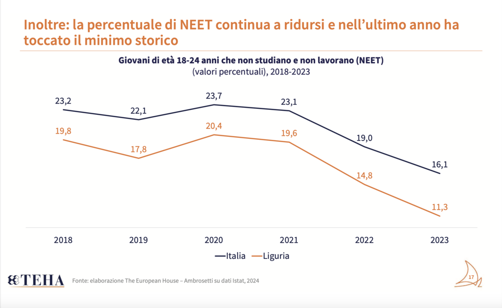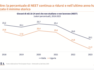 Balzo da record anche sul piano dell’occupazione, con la Liguria al primo posto nazionale (dati 2023) per la crescita rispetto al periodo pre-Covid, accompagnata da una netta diminuzione dei NEET, i giovani che non studiano, non lavorano e non cercano lavoro.
