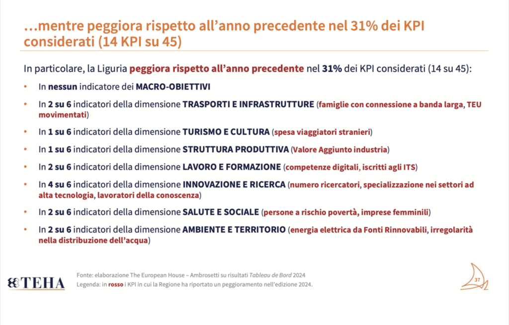 Il report di The European House - Ambrosetti non si limita a mostrare dati come medaglie, ma offre spunti di riflessione e punti di partenza per un miglioramento inevitabile. Ci sono voci che vedono la regione agli ultimi posti in Italia.
