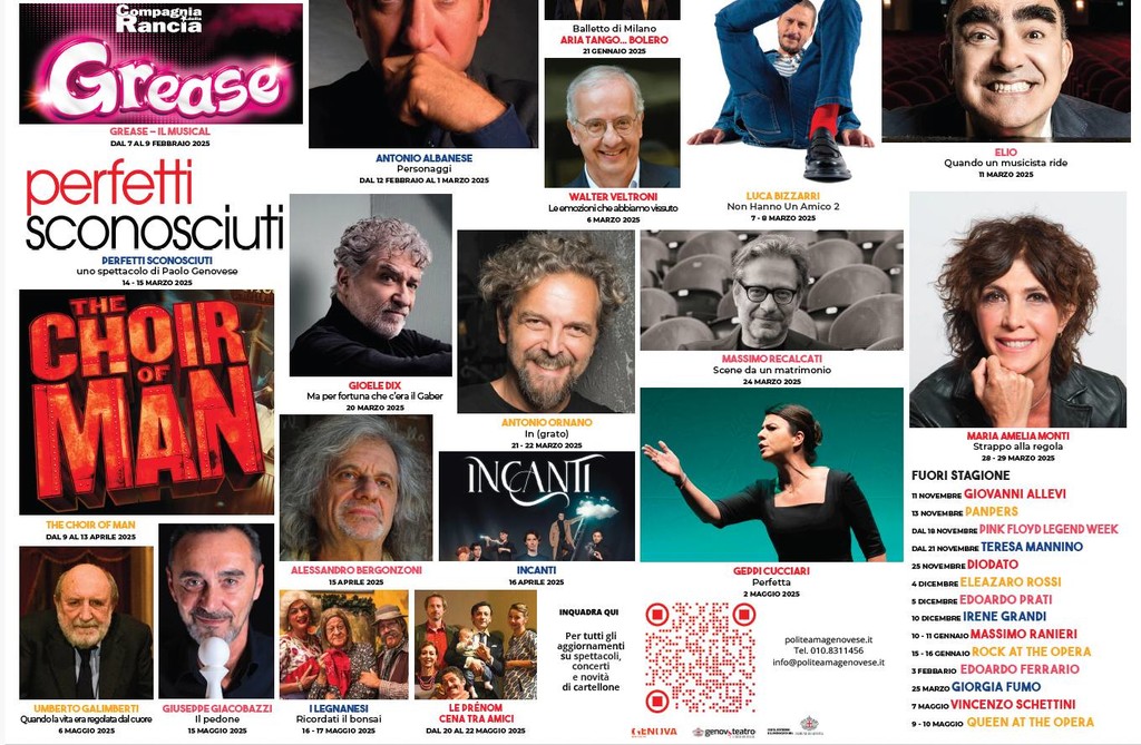 Una nuova stagione ricca di appuntamenti per tutti i gusti, dalle star del mondo del web alla prosa, dal teatro comico alla danza, dai grandi musical agli show internazionali: il Politeama Genovese, con il cartellone 2024/2025, sembra voler a tutti i costi stupire.
