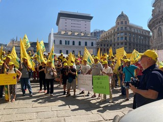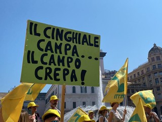 “Il cinghiale campa, il campo crepa” e “Noi a lavorare, i cinghiali a mangiare” sono alcune delle scritte apparse sui cartelloni dei manifestanti di Coldiretti Liguria che questa mattina sono scesi in piazza per chiedere alla Regione un piano straordinario per contenere il problema della fauna selvatica, e nello specifico dei cinghiali. Sei trattori, tantissime bandiere gialle e le idee ben chiare: gli agricoltori arrivati a Genova dall’intera regione hanno segnalato ancora una volta gli ingenti danni a cui le coltivazioni, e quindi le loro attività, vengono quotidianamente sottoposte a causa degli ungulati.