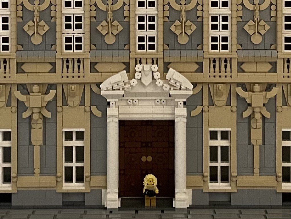 Dalle colonne che incorniciano l’ingresso alle decorazioni che si alternano alle finestre, passando per il colore che contraddistingue l’edificio, nella rappresentazione Lego di Palazzo Lomellino non manca nulla.
