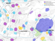 - Viola (Buffer edifici di culto 40 m): Indica le aree di influenza di 40 metri attorno agli edifici di culto.
