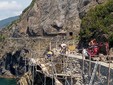 I lavori necessari per la riapertura della Via dell’Amore, tra Riomaggiore e la frazione di Manarola, si sono rivelati complessi e sfidanti dal punto di vista ingegneristico, proprio a causa della fragilità del contesto naturale, scavato nella roccia tra cielo e mare, lungo una spettacolare falesia. Gli interventi sul sentiero e sui versanti sono iniziati il 14 gennaio 2022 e si sono conclusi il 19 luglio 2024: sul posto hanno lavorato ditte specializzate con l’impiego di elicotteri per il trasporto dei materiali, la posa in opera di una rete in acciaio inox e l’esecuzione di chiodature profonde di varia lunghezza, tutte eseguite da operai rocciatori, che hanno movimentato le attrezzature sulle pareti, sospesi con corde e funi di acciaio ad appositi ancoraggi.