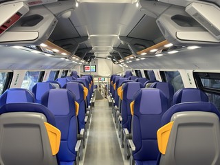 I treni Rock, a doppio piano, possono ospitare oltre 1.100 persone, accogliere fino a 12 biciclette e sono dotati di punti di ricarica per e-bike o monopattini elettrici. Le poltrone sono provviste di prese di corrente e usb, la climatizzazione interna si autoregola. A bordo treno l’area per il passeggino e, nell’ampia toilette, il fasciatoio e il porte-enfant rendono il viaggio comodo quando ci sono i più piccoli.
